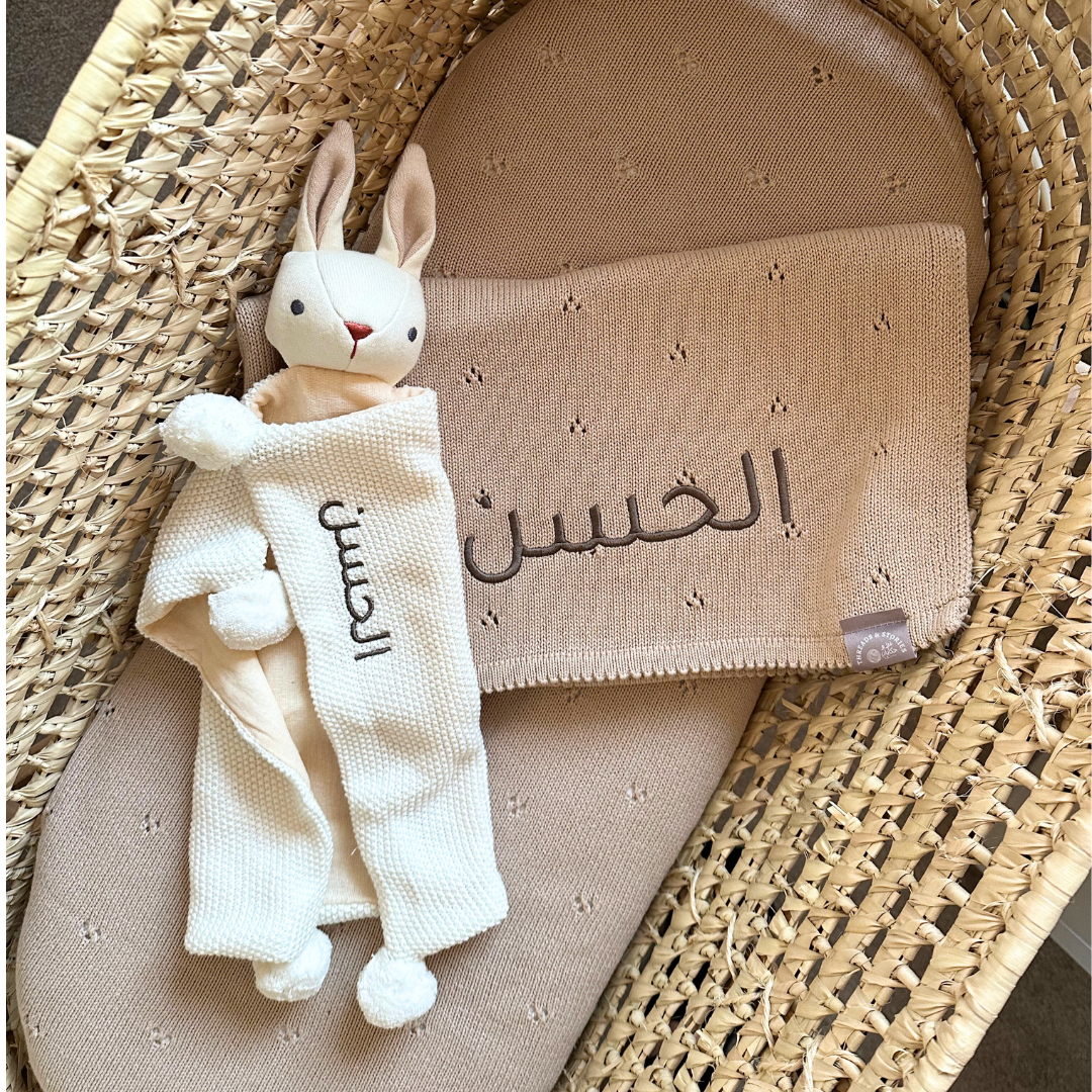 Product Description: Wrap your newborn or toddler in a soft, stylish cotton blanket that keeps them warm and comfortable on any occasion. Perfect for your child or as a thoughtful baby shower gift, it combines practicality with sentimental value. Paired with our cream comforter, a gentle and durable companion that soothes, entertains, and provides security from newborn days through toddlerhood, becoming a cherished part of your little one’s early years.