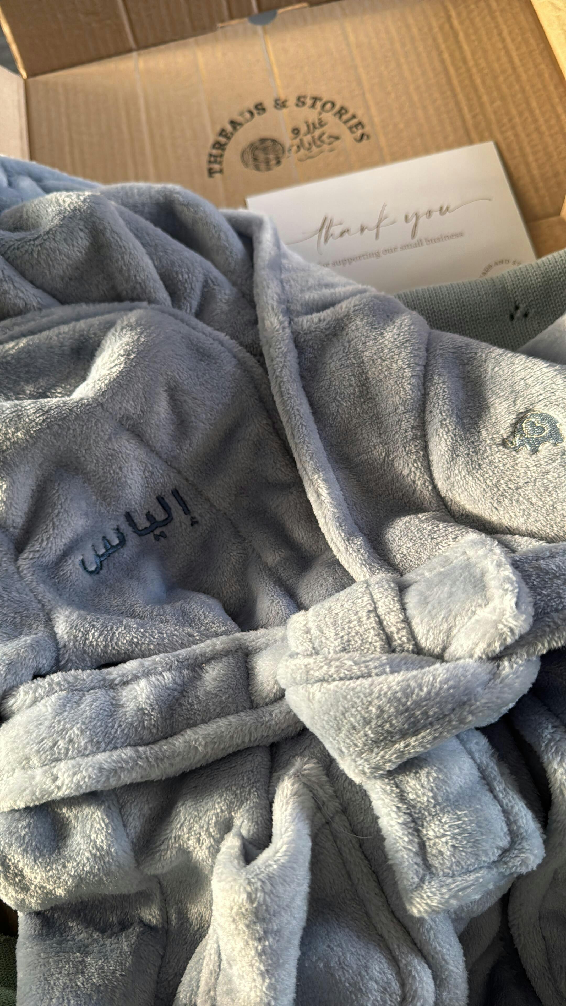 Keep your little one cosy in this adorable baby dusky blue dressing gown. Designed with a secure sewn-in tie belt for safety and two handy front pockets, this dressing gown is perfect for snuggling up after bath time or on chilly mornings. Embroidery will be placed on the front right-hand side of the dressing gown around the chest area.